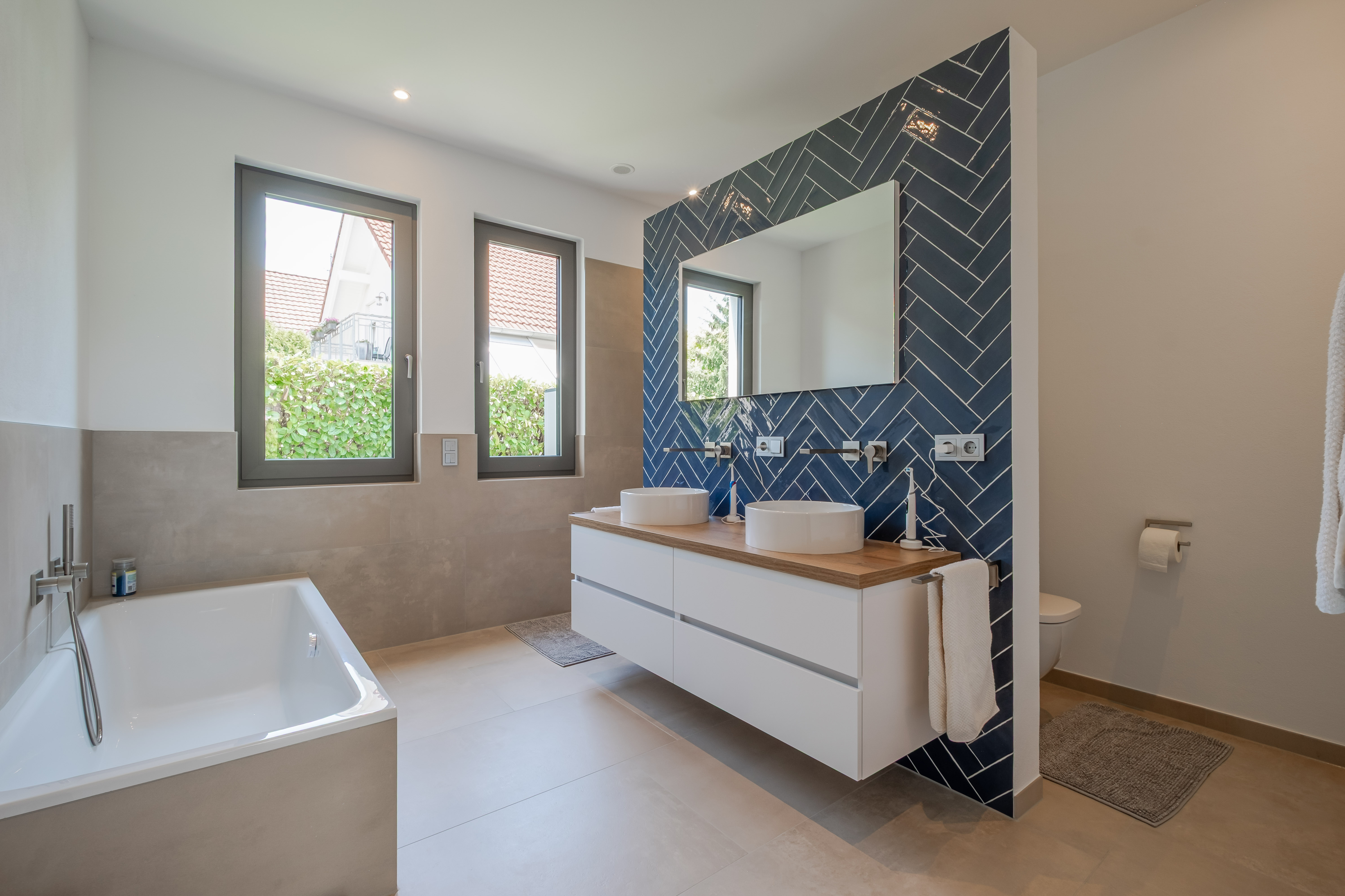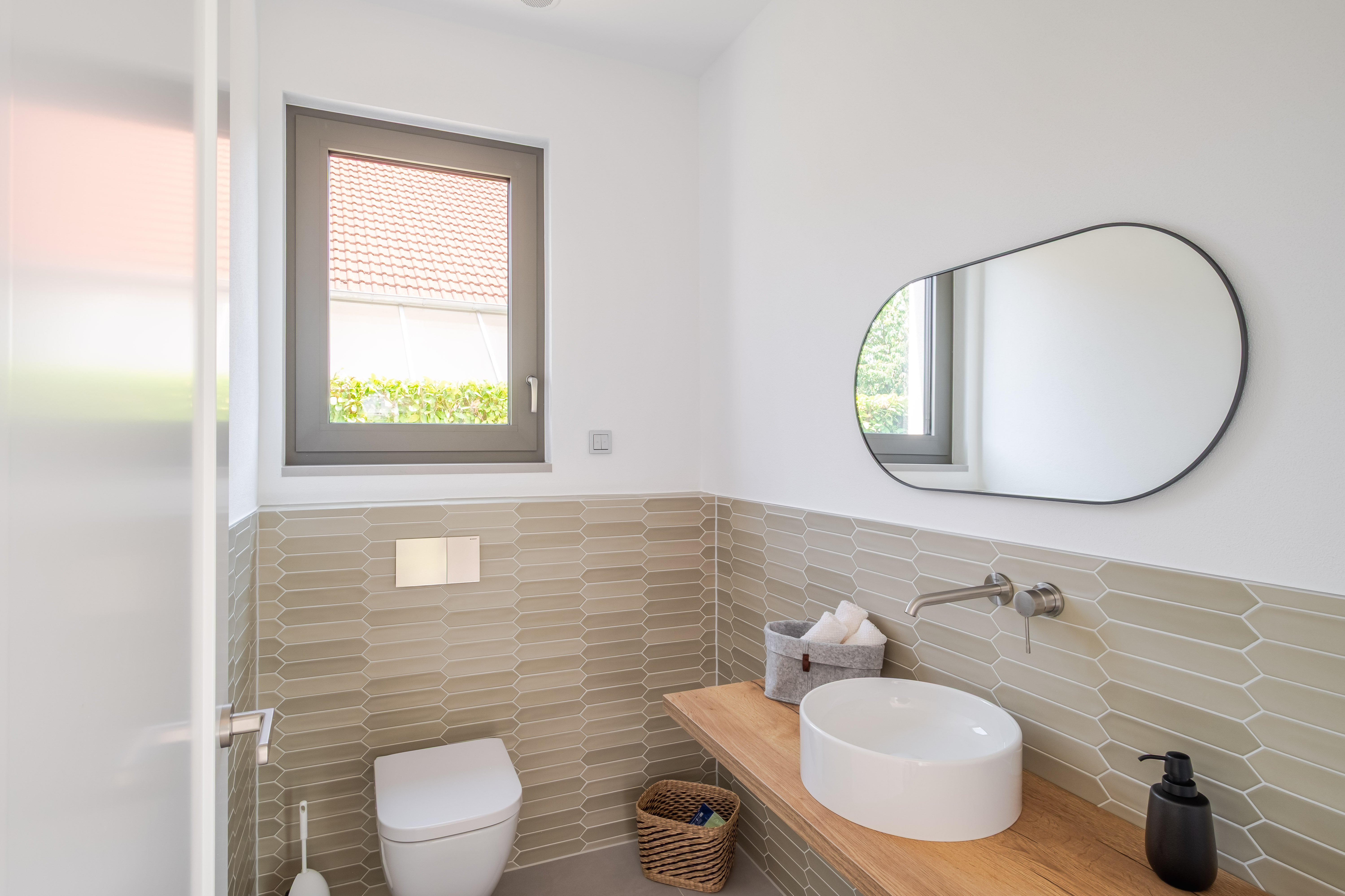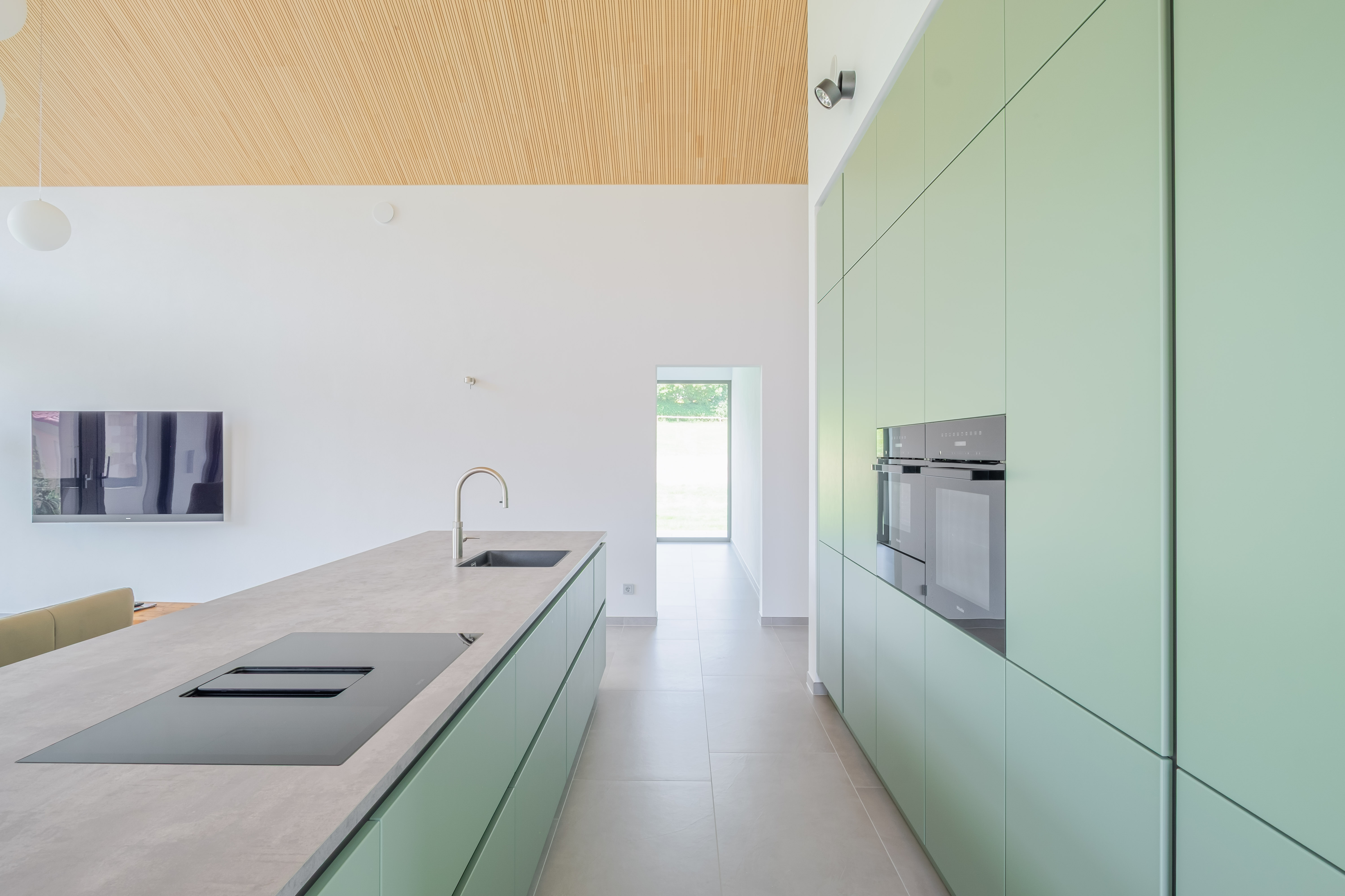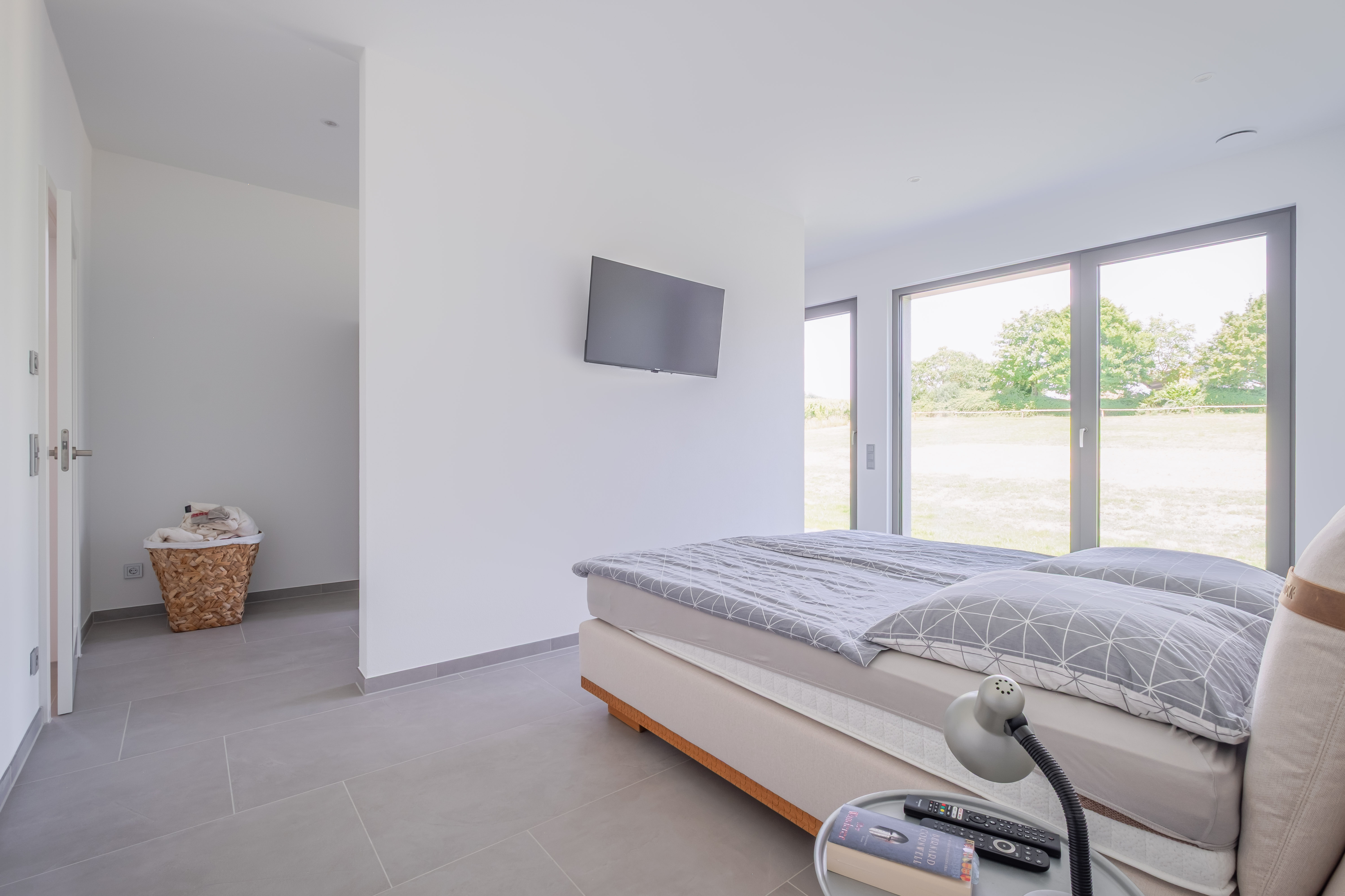 In absolut ruhiger und idyllischer Feldrandlage bietet Ihnen dieser exklusive Neubau-Bungalow die perfekte Symbiose aus moderner Architektur, energieeffizienter Bauweise und hochwertiger Ausstattung. Geplant von renommierten Architekten und gebaut mit lokalen, zuverlässigen Baufirmen, lässt diese Immobilie keine Wünsche offen und entspricht selbst höchsten Erwartungen an Design und Wohnqualität. In einer kaum befahrenen Seitenstraße gelegen, bildet das ca. 1.890 m² große Grundstück in leichter Hanglage viel Platz & Möglichkeiten zur freien Entfaltung – Vorbereitungen für einen Pool sind beispielsweise bereits getroffen worden. Auch eine große Doppelgarage mit zusätzlicher Eingangstür und Vorbereitungen für einen Personenaufzug ist vorhanden, so eignet sich diese Immobilie zum Beispiel auch hervorragend für das barrierearme Wohnen im gehobenen Alter. Einzigartig an dieser Liegenschaft ist der nahtlose Übergang zu den Weinbergen und die grandiose Aussicht – diese können Sie aber nicht nur im Garten genießen! Ein architektonisches Highlight ist der verglaste Giebel mit großen Schiebetüren zur Terrasse hin. In Verbindung mit dem bis zum First hin geöffneten Dachraum, bietet sich ein außergewöhnlicher Raum zum Kochen, Essen und Wohnen mit einem herrlichen Blick ins Grüne und unvergleichlicher Atmosphäre. Die erstklassige Einbauküche mit modernster Technik (Kochfeldabzug von Berbel, Quooker Wasserhahn und Miele Einbaugeräten) lädt zu kulinarischen Genüssen ein und perfektioniert das offene Wohnkonzept zusammen mit dem Ess- und Wohnbereich – all das mit einer hinreißenden Aussicht auf die Weinberge und den Pfälzer Wald! Abgerundet wird der Wohnbereich mit einer großen, durch das vorgezogene Satteldach geschützten, Terrasse. Durch den großen Flur, welcher auch Platz für ein praktisches Büro bietet, erschließt sich das Schlafzimmer mit Ankleide und eigener Terrasse, das Gästezimmer und das große Badezimmer mit bodentiefer Dusche und Badewanne. Außerdem verfügt die Immobilie über ein Gäste-WC und einen großen Hauswirtschafts- und Technikraum. Ein weitläufiger Dachraum dient als zusätzlicher Lagerfläche. Beim Bau wurde Wert auf eine umfassende und moderne Haustechnik gelegt. Eine große Photovoltaikanlage mit Speicher sorgt für geringe Energiekosten, während die Wärmepumpe in Verbindung mit einer Fußbodenheizung und einer kontrollierten Wohnraumlüftung mit Wärmerückgewinnung für absolutes Wohlfühlklima sorgt. In Verbindung mit der hochqualitativen Bauweise und umfangreichen Dämmmaßnahmen ergibt sich Energieeffizienzklasse A+!