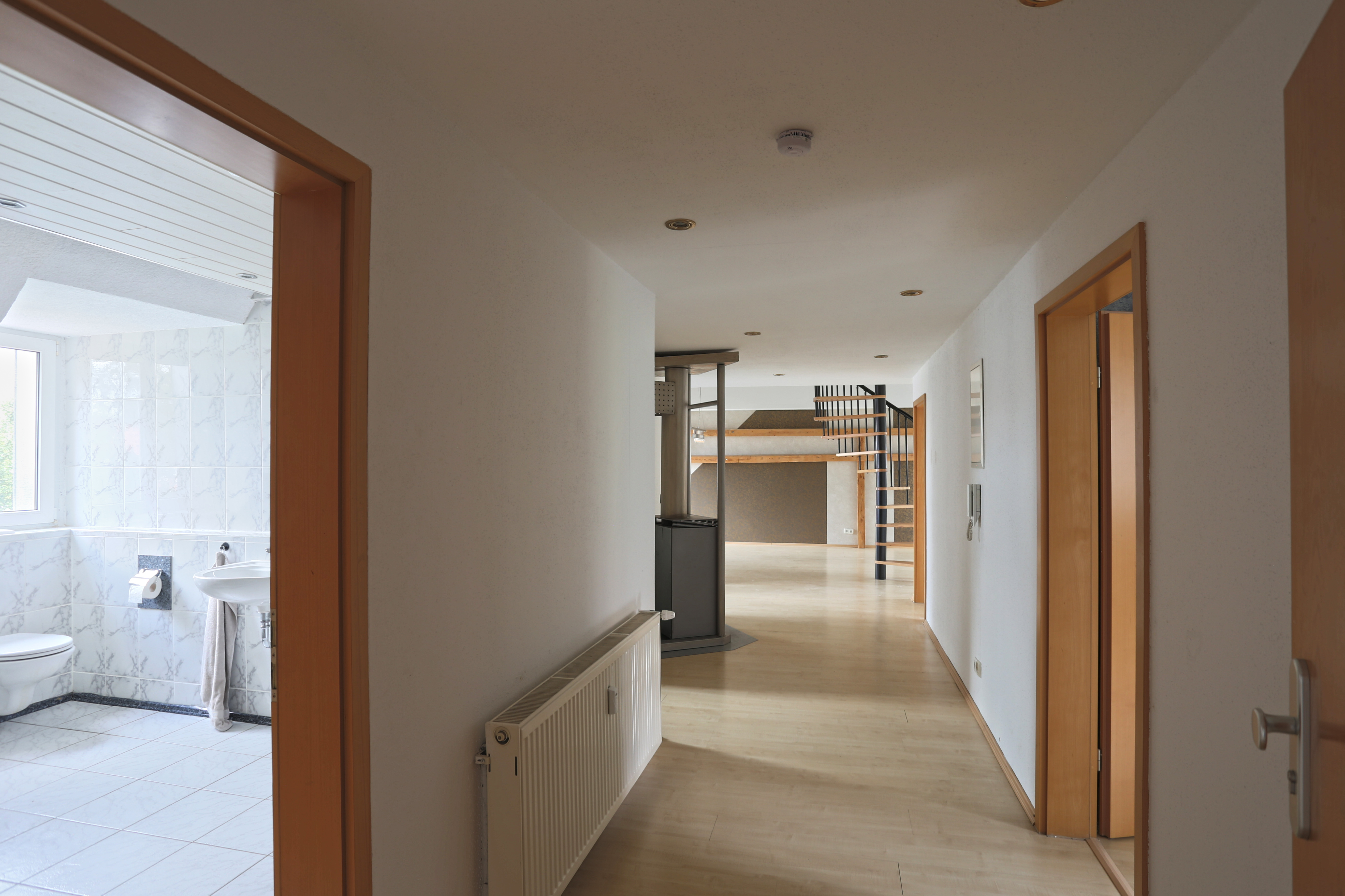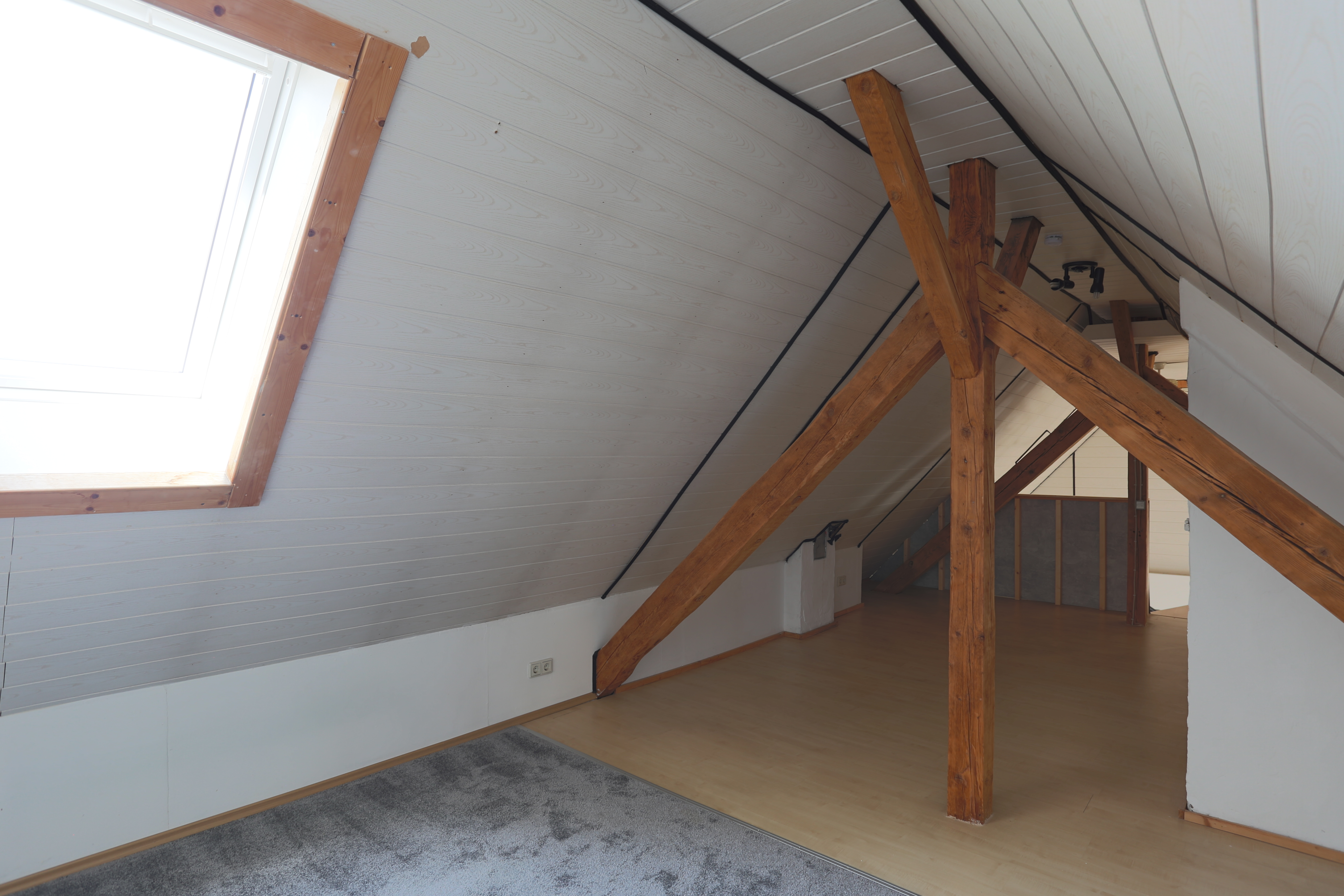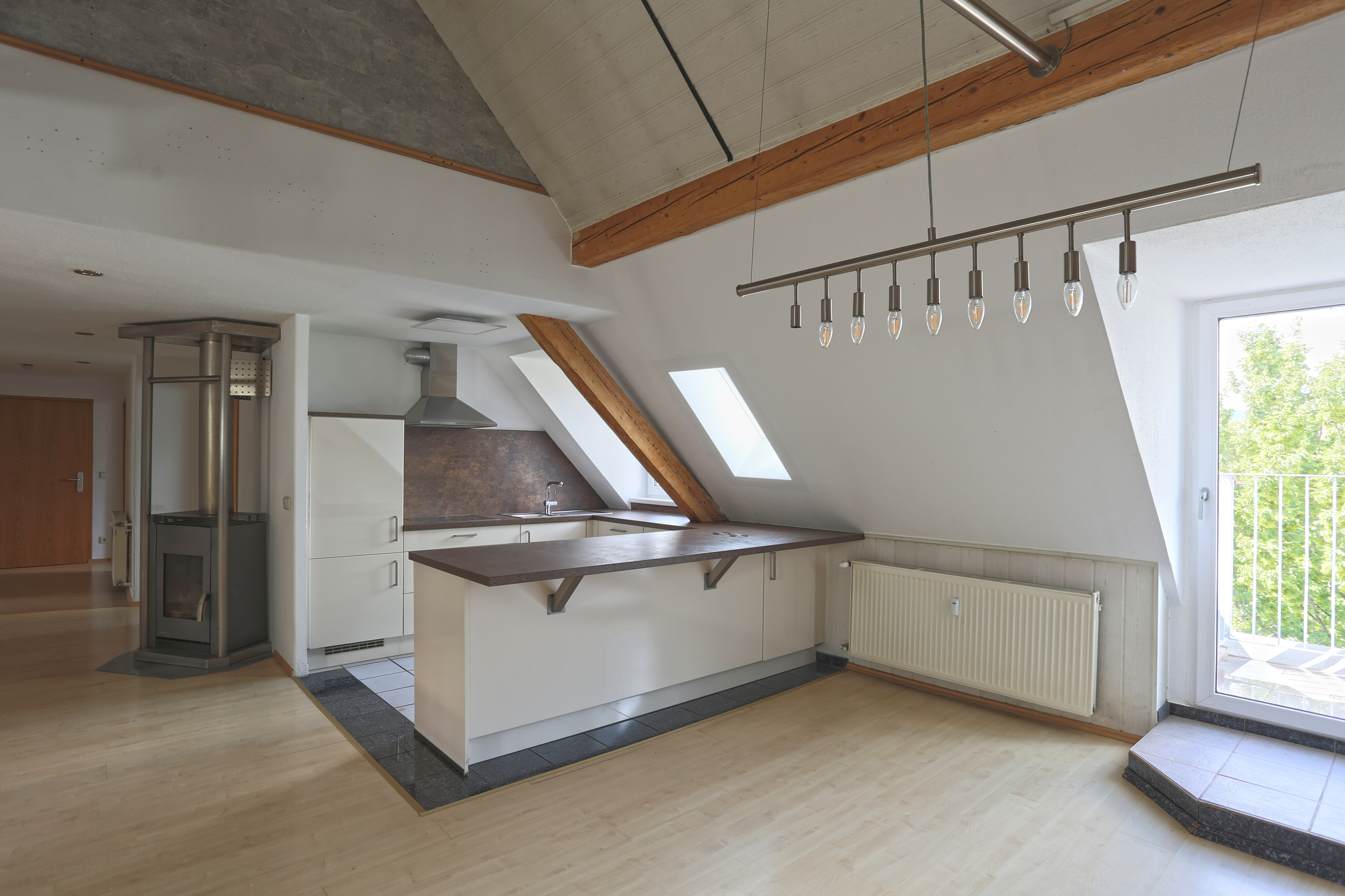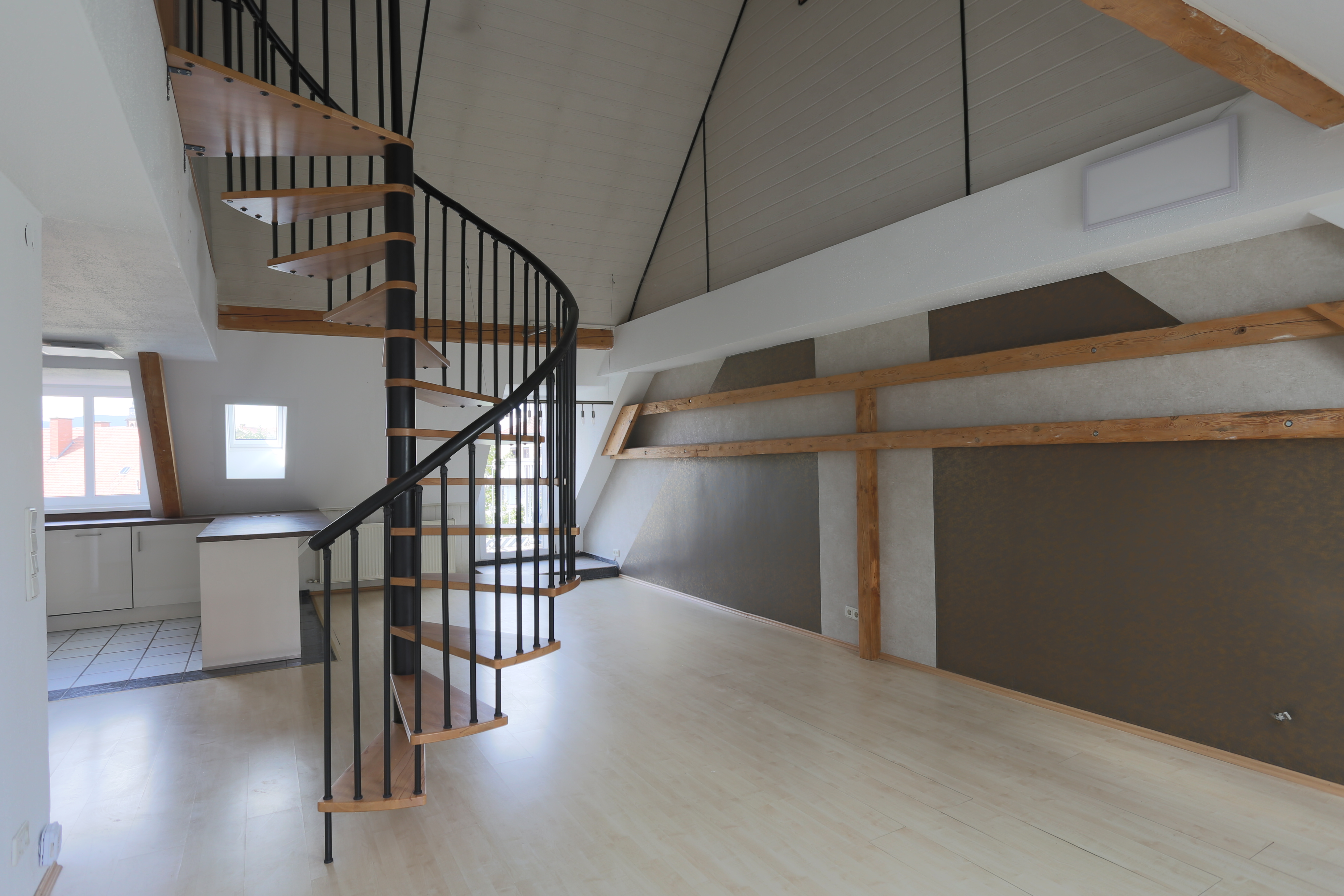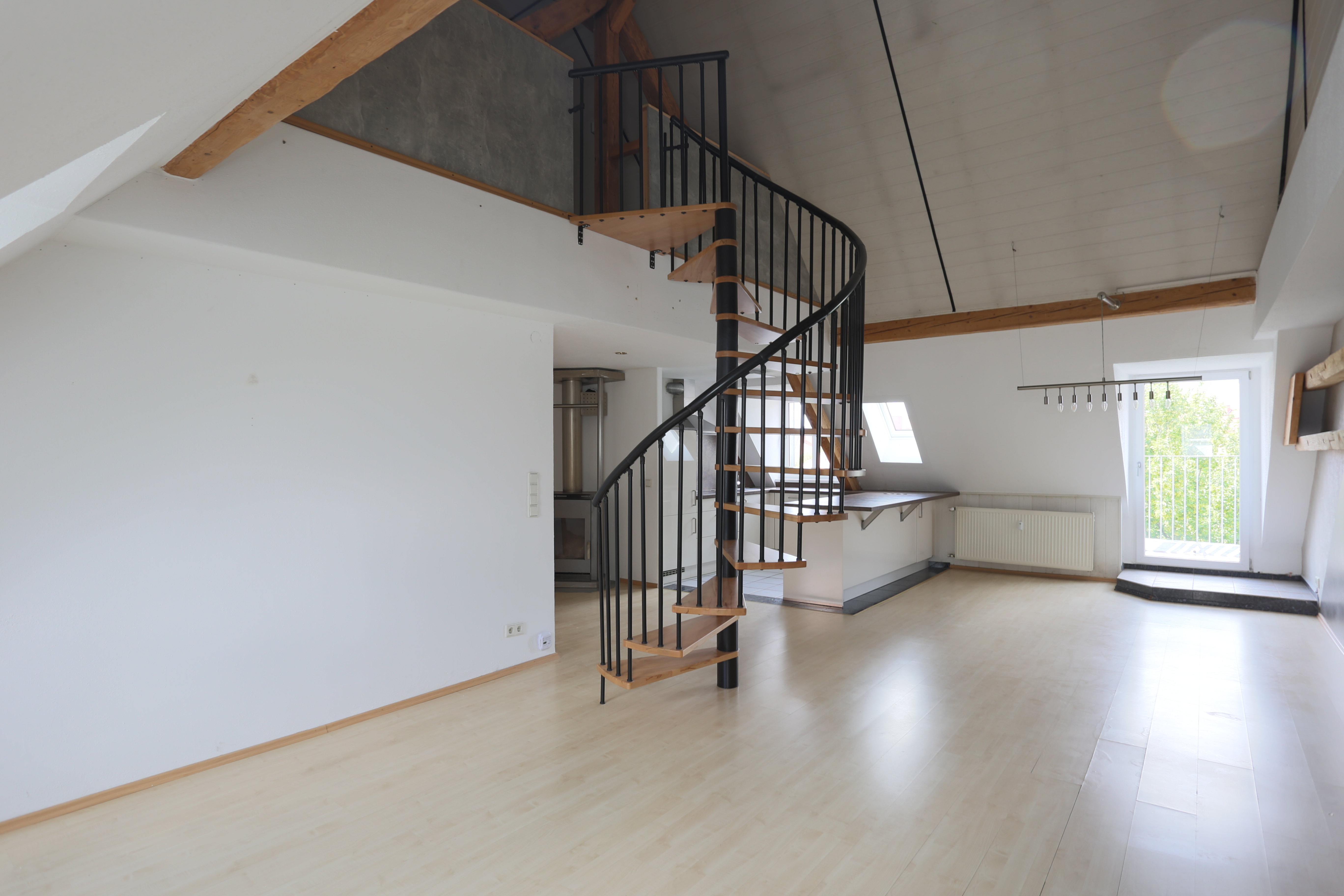 Zentrumsnah in einem gepflegten und stetig modernisierten Ringstraßengebäude gelegen, präsentiert sich diese charmante Maisonettewohnung im 4.OG (ohne Aufzug) auf ca. 110 m² Wohnfläche. Das gesamte Gebäude wurde 2002 kernsaniert und zu Eigentumswohnungen umgebaut. In 2024 wurde das Dach, inklusive Dämmung, Eindeckung, Dachflächenfenster, Solarthermie und einer eigenen Photovoltaikanlage modernisiert, auch die Fassade wurde in diesem Zuge renoviert. Durch mehrere Hauseingänge gelangt man in das weitläufige Treppenhaus und hinauf zur Wohnungstür. Direkt nach dem Betreten der Wohnung bietet der breite Flur dabei Zugang zu zwei großen Schlafzimmern, dem Badezimmer mit Badewanne, sowie einem Abstellraum, bevor er sich zum offenen Wohn-/Ess- und Kochbereich hin öffnet. Neben einem offenen Giebel, der modernen Einbauküche und dem idyllischen Balkon steht Ihnen hier als besonderes Highlight ein gemütlicher Kaminofen zur Verfügung. Über eine Wendeltreppe erreichen Sie das Dachstudio, welches als Lager- oder Hobbyraum genutzt werden kann. Zum Angebot gehört außerdem eine eigene Garage, sowie ein separater Außenstellplatz. Ein eigener Kellerraum rundet das Gesamtpaket ab.