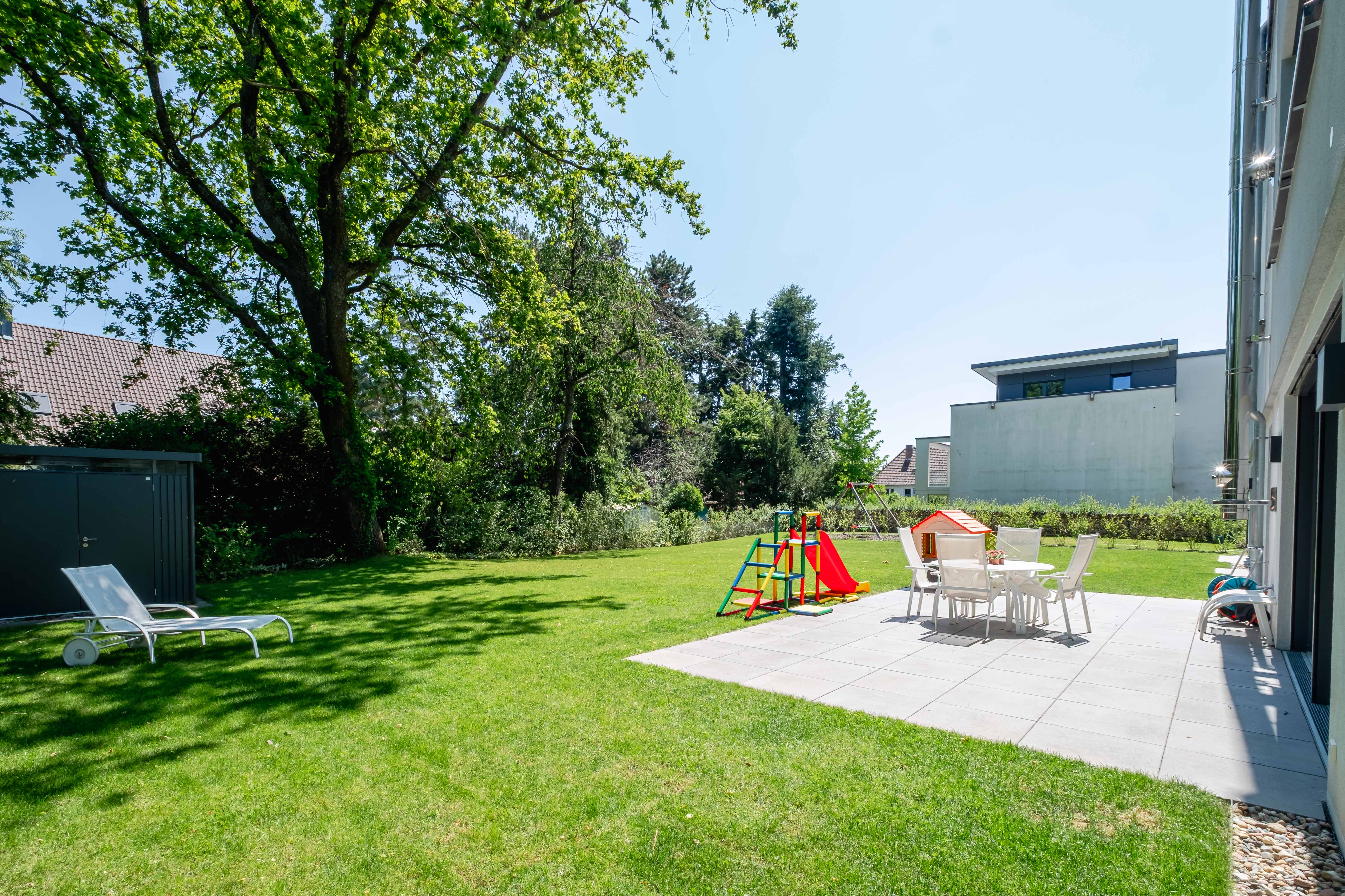 Ohne Zweifel handelt es sich bei dieser außergewöhnlichen Immobilie um eine der besten Adresse in Landau. Inmitten des begehrten Wohngebiets „Im Löhl“, idyllisch und dennoch zentrumsnah, steht diese exklusive Gartenwohnung ab 01.09.2025 zur Vermietung frei. Absolut ruhig in zweiter Reihe gelegen, wurden bei dieser außergewöhnlichen Wohnanlage weder Kosten noch Mühen gescheut. Über einen schönen Gartenpfad gelangt man zum Hauseingang und vorbei am Aufzug im Hausflur, barrierearm in die Wohnung. Hier bieten sich Ihnen auf insgesamt ca. 191 m² Wohnfläche nicht nur zwei sonnenverwöhnte Terrassen, sondern auch ein riesiger (ca. 60 m²), offener Wohn-/Ess-/Kochbereich. Dieser ermöglicht durch zwei große Schiebetüren und eine zusätzliche Terrassentür den Zugang zu Ihrem eigenen, privaten Garten mit gewachsenem Baumbestand und schöner Rasenfläche auf insgesamt ca. 510 m² Fläche – ein einzigartiger und besonderer Luxus in der Wohnraumvermietung. Am Flur mit integrierter Garderobe entlang verteilen sich neben zwei Kinderzimmern auch der abgetrennte Schlafbereich, bestehend aus dem Elternschlafzimmer, einer Ankleide mit Einbaumöbeln und dem modernen Masterbadezimmer mit bodentiefer Dusche und Badewanne. Abgerundet wird das Raumangebot durch ein Gästebad mit bodentiefer Dusche, einen Hauswirtschaftsraum für Waschmaschine und Trockner, sowie einen Abstellraum mit direktem Zugang zur Küche – hier lädt die hochwertige Einbauküche mit Kochinsel (zzgl. 150 € pro Monat), Miele-Geräten und Induktionskochfeld mit integriertem Abzug zu kulinarischen Erlebnissen ein. Außer dem Personenaufzug neben der Wohnungstür erschließt sich die Tiefgarage des Gebäudes auch über einen Aufzug für Fahrzeuge, so wird Ihnen der Zugang zu den Tiefgaragenplätzen ermöglicht (zzgl. 80 € pro Monat je Stellplatz). Hier findet sich auch der zur Wohnung gehörende Kellerraum und der gemeinschaftliche Fahrradraum.