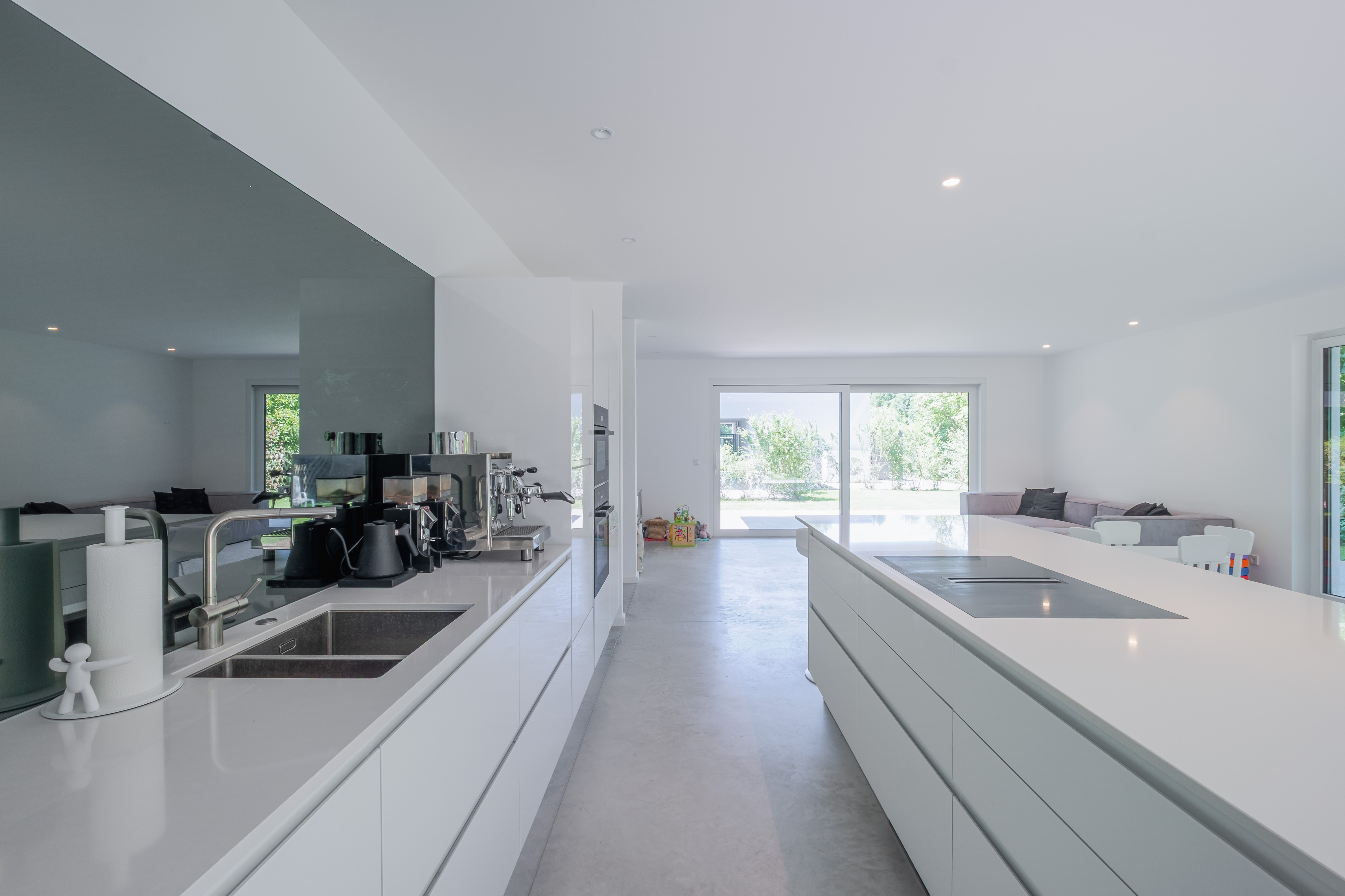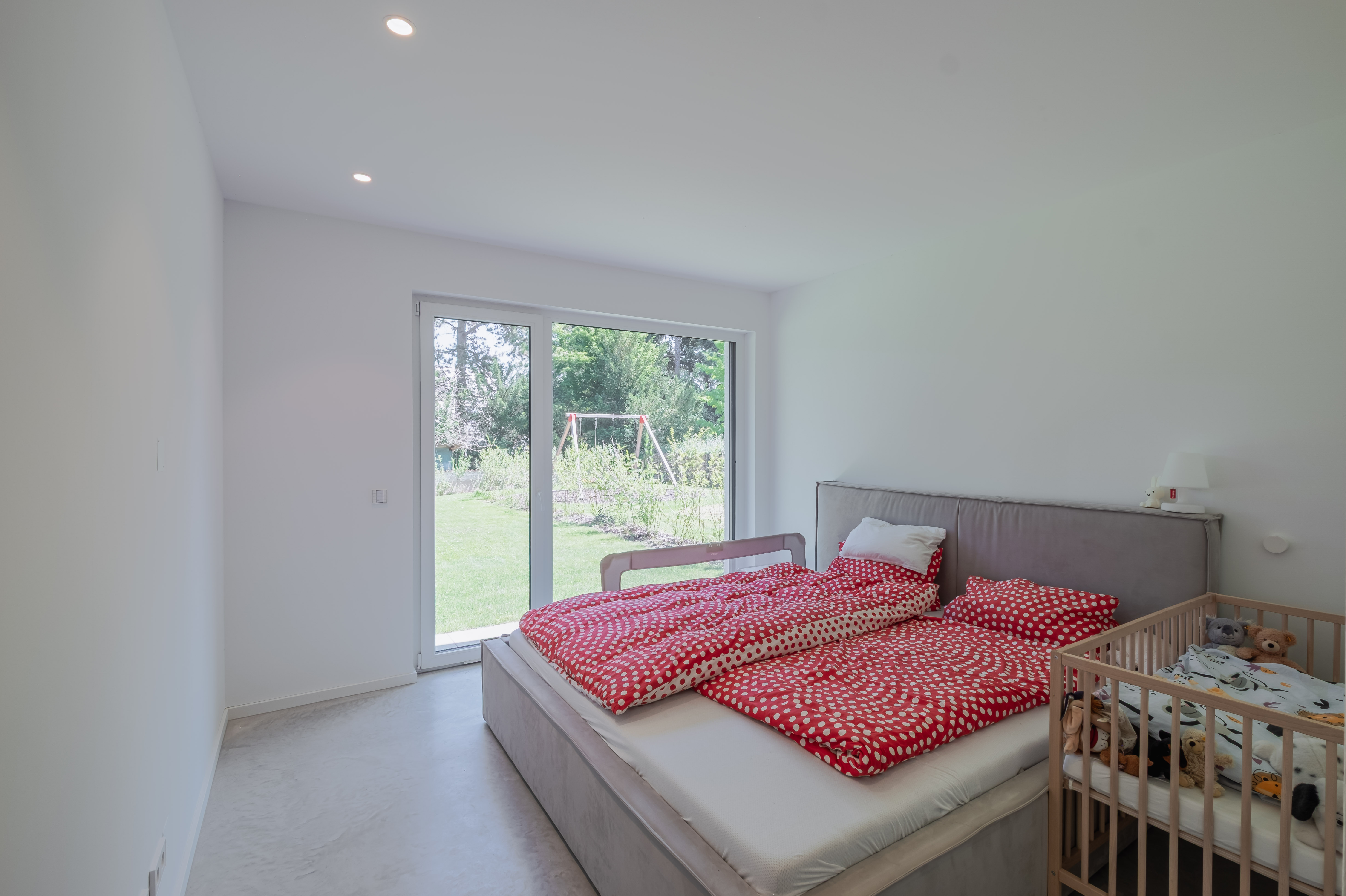 EG: Flur, Wohnen/Essen/Kochen, HWR/Lager, zwei Zimmer, Duschbad, Elternschlafzimmer, Ankleide, Masterbad, zwei Terrassen, großer Garten