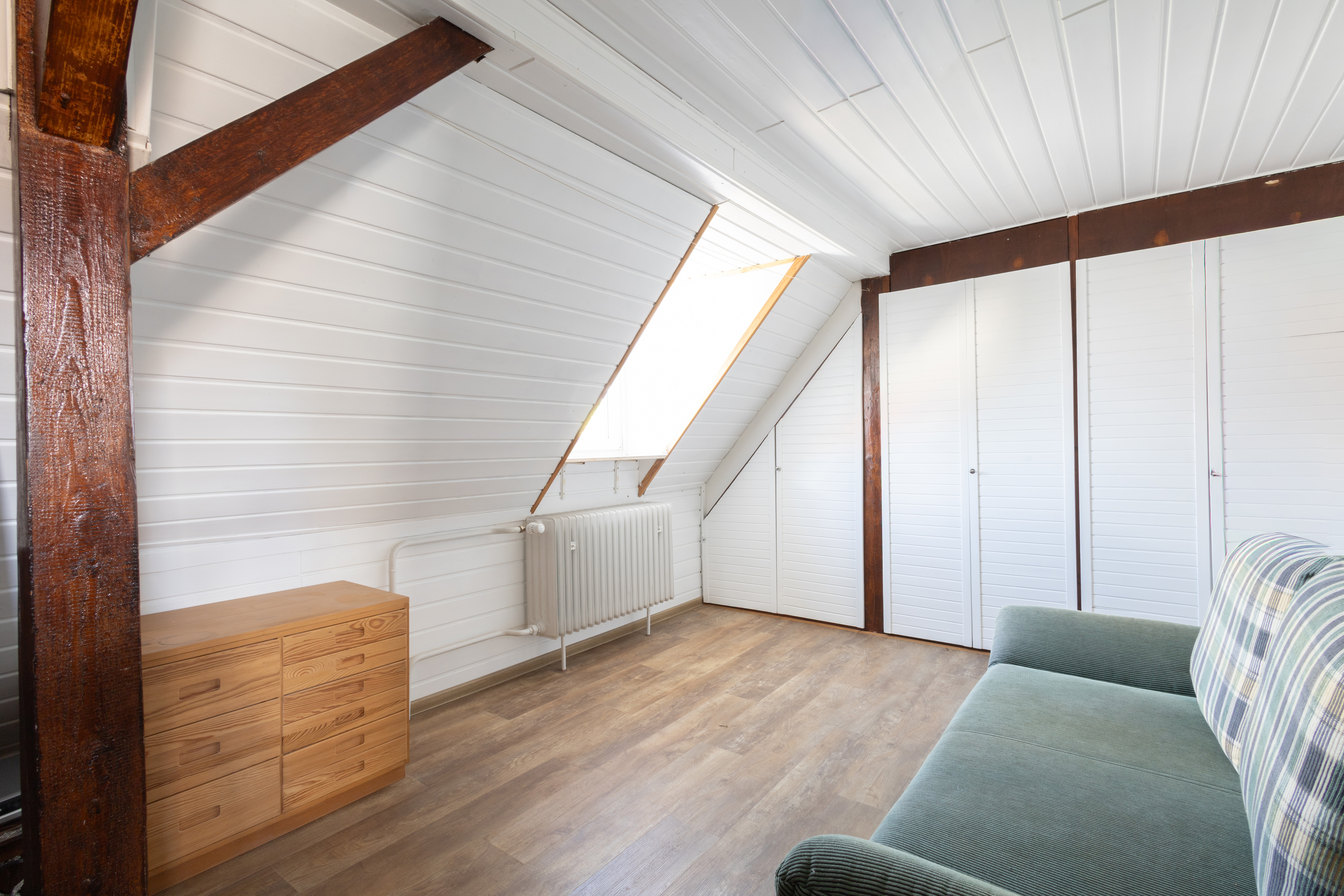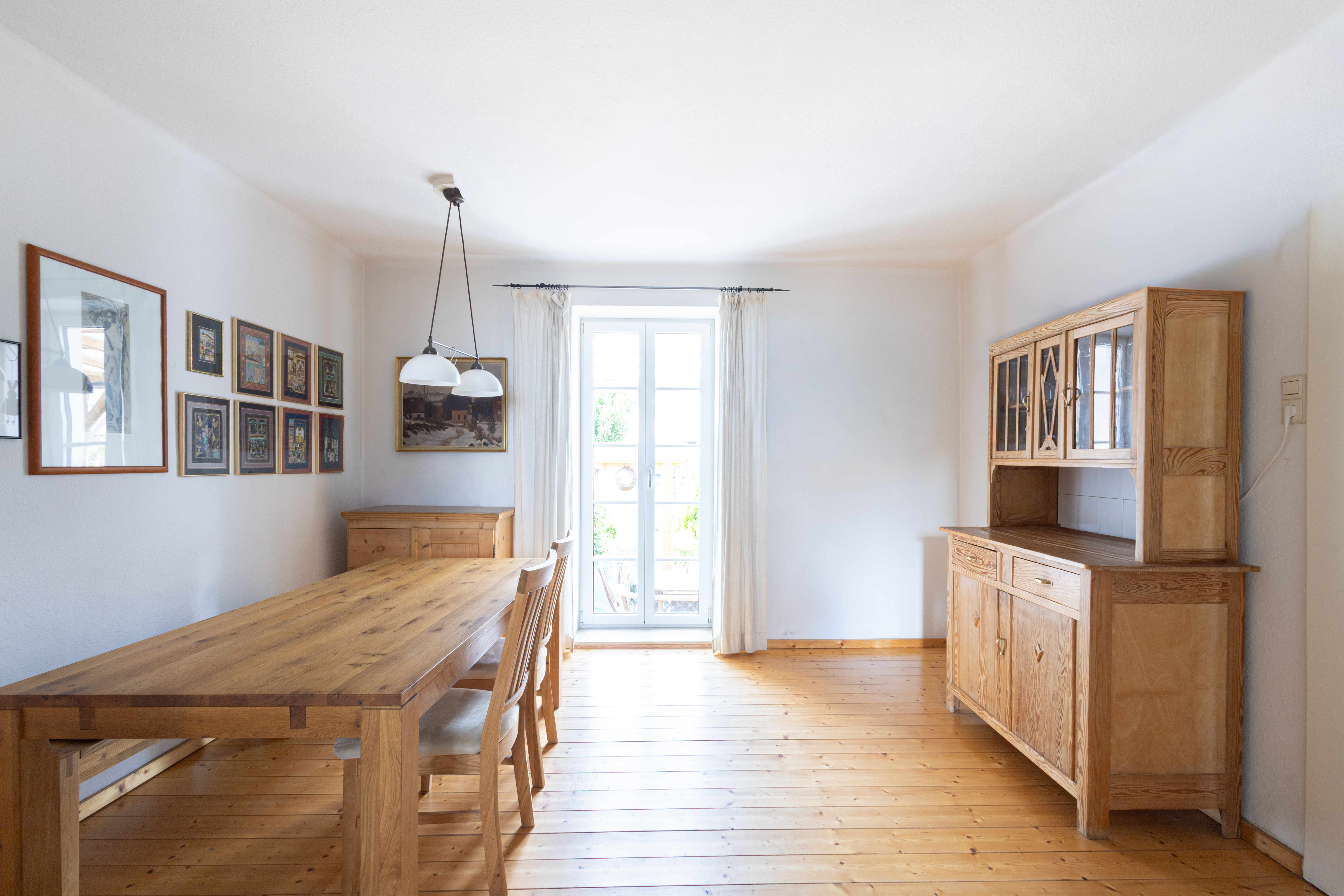 Im Erdgeschoss angelangt, befindet sich zur Linken das stilvolle und helle Wohn- & Esszimmer mit Dielenboden und Holzofen. Angrenzend hieran finden Sie die Küche mit direktem Gartenzugang. Im Obergeschoss der Immobilie befindet sich zur Rechten das Badezimmer mit Dusche und zwei Schlafzimmer, welche jeweils über ca. 16 m² und eines hiervon über einen weiteren Holzofen verfügt. Im Dachgeschoss erwarten Sie zwei weitere Schlafzimmer und ein Badezimmer mit Wanne.